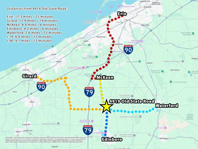 1,200± SF pole building on 3.53± acre corner lot for sale in Washington Township. Ideal location between Edinboro & McKean and just 6.6 miles from I-79. Features a 1,200± SF (30’ x 40’) pole building – built in 2001 – with 10’x9’ overhead door & 9’5” ceilings. Gas & electric available. Private well & septic buyer’s responsibility. Approximately 4.2 miles from Edinboro, 4.4 miles from McKean & 17.3 miles from Erie. Zoned B-1, Highway/Plaza Commercial District, offering many potential uses: retail, restaurant, office, service business, auto sales/repair, self-storage, single family home & more. Contact broker for additional information or to schedule a tour.