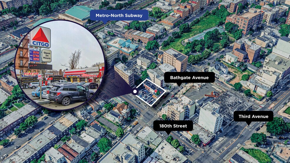 Cushman & Wakefield is pleased to present 495 East 180th Street & Bathgate Avenue in the Belmont neighborhood of the Bronx. The property is a high-visibility corner commercial site improved with a former service station building and will be delivered vacant and decommissioned. Fuel sales are prohibited. The property offers a compelling opportunity for auto service uses, retail repositioning, or residential redevelopment. Zoned R6A, the site allows approximately 25,000 buildable square feet as-of-right, making it attractive to both owner-users and developers seeking a well-located Bronx development opportunity.