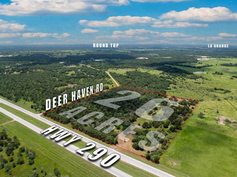 24 Acres -/+. FAÇADE PRINCIPALE SUR LA ROUTE 290 AU COIN DE LA ROUTE. CROISE LE CHEMIN DEER HAVEN. Les possibilités sont illimitées ! Pourquoi ne pas faire partie du rêve américain ? Il y a près de 1 000 pi2 de façade sur 290 et un grand potentiel pour des possibilités commerciales, résidentielles ou à usage mixte. Faites en sorte que ce revenu de première ligne produise des revenus avec des commerces de détail et des ranchettes divisées. La terre est le point de départ des rêves — faites-en le vôtre ! Électricité disponible pour être acheminée vers le terrain. À quelques minutes de tous les lieux de spectacles d'antiquités et de restaurants du centre-ville de Round Top et situés au centre d'Austin, Round Rock, Giddings, Brenham, LaGrange, etc. Terrain partiellement défriché avec des arbres épars. Peut être facilement effacé ou conservé pour une intimité partielle. L'acheteur doit effectuer ses propres vérifications préalables. 30.142934LATITUDE, -96,775915LONGITUDE, LA SUPERFICIE EST SITUÉE AU 290 ET À L'ANGLE DE DEER HAVEN RD. Voir les photos aériennes et la vidéo ci-jointes.