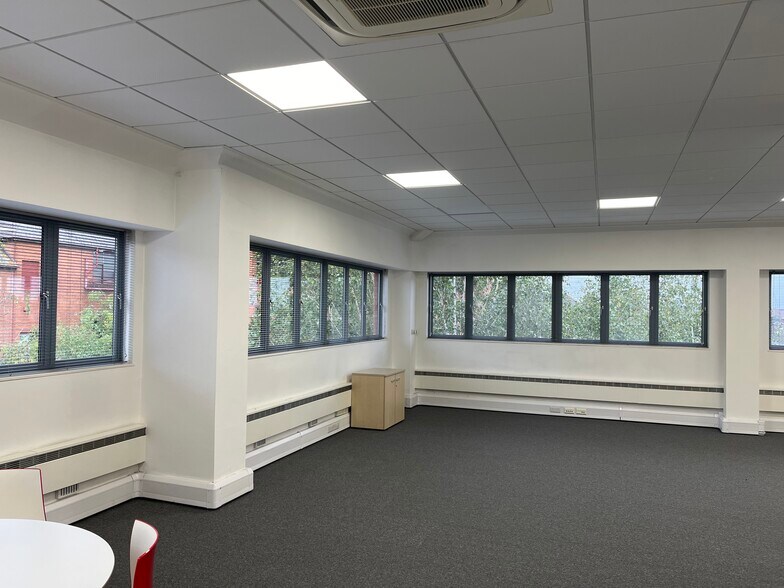 Une suite de bureaux contemporaine située au deuxième étage, offrant une excellente lumière naturelle avec des fenêtres à double aspect.