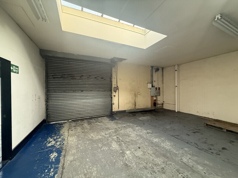 The property is part of a larger terraced block comprising a single storey end unit of concrete block construction.