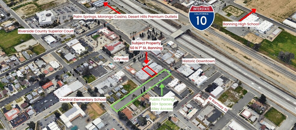 6,400 sq. ft. building centrally located in Historic Downtown Banning with easy access to the 10 FWY. Walking distance to Banning City Hall, County of Riverside offices, Superior Court, shopping, dining and the historic Fox Theater.