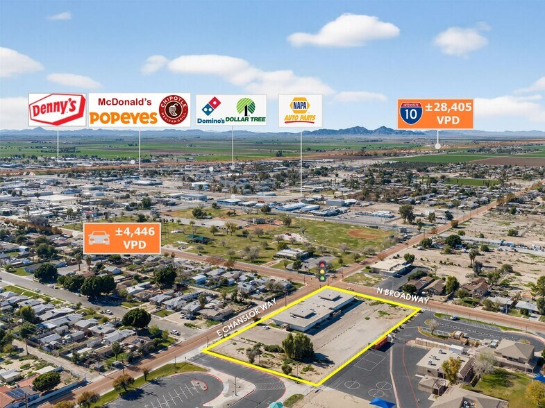 - Signalized Hard Corner with ±4,446 VPD Traffic Counts on N Broadway; Positioned 1.2-Mile From I-10 Traffic Over ±28K VPD
