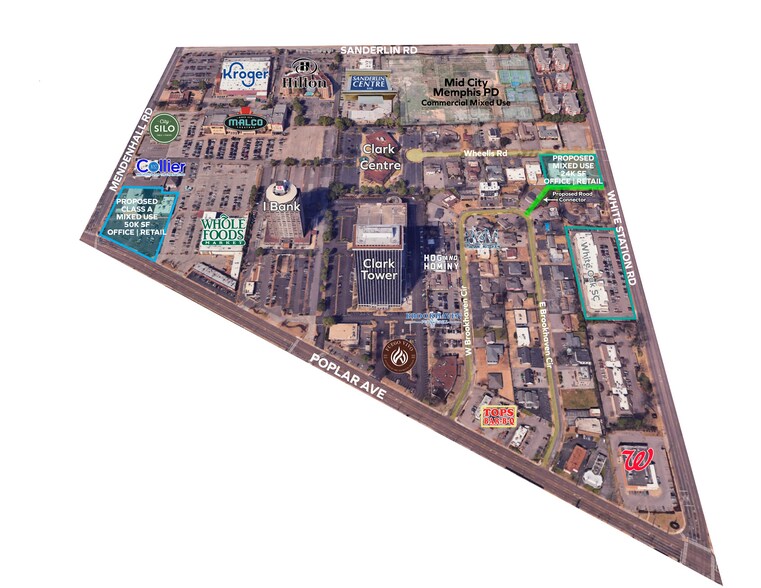This upcoming ±50,000 SF mixed-use project in the heart of East Memphis delivers a premium combination of modern retail and office environments within a high-income, high-traffic corridor. Positioned at Poplar Avenue and Mendenhall Road—one of the region’s most established commercial intersections—the development provides walkable access to major amenities and serves a dense population and daytime workforce. With strong demographics, robust nearby commercial activity, and high visibility along major arterials, the property represents a strategically placed opportunity for businesses seeking a presence in one of Memphis’s most desirable submarkets. The project is planned for completion in Q1 2028.