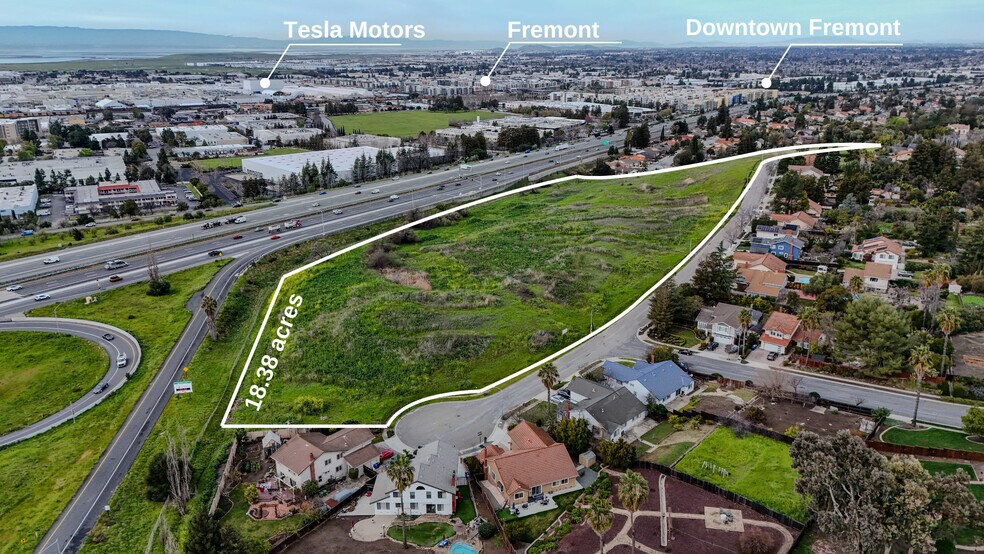 Approximately 18.38 acres of unimproved land located at the northeast corner of I-680 and Mission Boulevard, surrounded by high-value residential neighborhoods and natural vegetation.