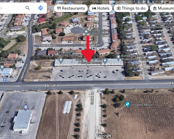 Elms Square est idéalement situé sur West Elms Road, près de la rue Fort Hood. Elms Square est à 12 minutes de la base militaire de Fort Cavazos et à environ 5 minutes de l'Interstate 14. Avec l'expansion actuelle d'Elms jusqu'au chemin Clear Creek, Elms Road a augmenté le tracé ? c flow, ce qui donne plus d'occasions à votre entreprise d'être vue. Elms Square compte de nombreuses entreprises déjà établies et qui offrent des possibilités à des clients potentiels. Il y a un arrêt d'autobus pour le HOP situé à distance de marche du centre, ce qui permet aux clients de se rendre facilement au centre.
