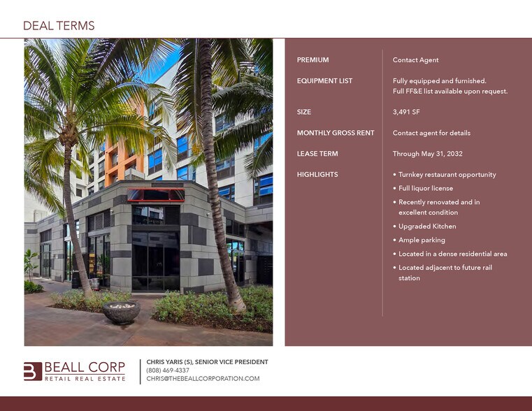 Turnkey Kakaako Restaurant 502 Keawe St 3 491 pi² d'espace disponible • Commerce de détail • 4 étoiles • Honolulu, HI 96813