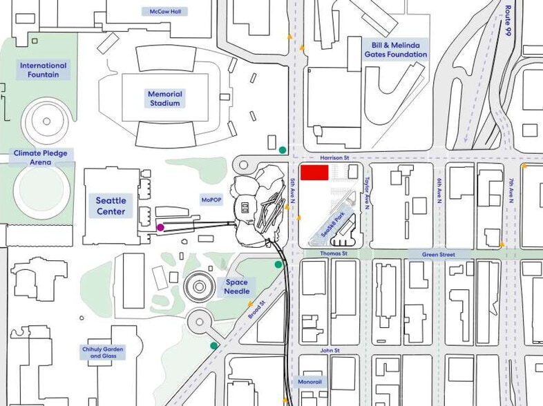 VACANT LAND. 6,780sf prime corner parcel at Seattle Center. Landmark location only across the street from the Space Needle, the Gates Foundation and the Museum of Pop Culture. SM-UP 160 Zone.