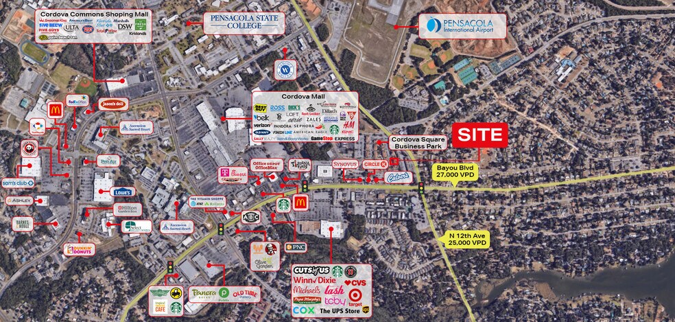 Bellcore is pleased to offer for lease a +/- 8,461-square-foot, single-tenant office building located at 5061 North 12th Avenue in Pensacola, Florida. Positioned on a +/- 2.06-acre site zoned C-2, the property offers a flexible office environment well-suited for professional, medical, financial, or administrative users. Constructed in 2003, the Class B, single-story building was formerly occupied as a bank, offering strong infrastructure fundamentals, efficient floor plate potential, and excellent site circulation with ample surface parking. The property benefits from strong exposure along North 12th Avenue with traffic counts of approximately 25,000 vehicles per day and offers convenient access to Interstate 10 and Pensacola International Airport, both located just minutes from the site. Its central location within Pensacola’s primary commercial corridor provides excellent regional connectivity and accessibility for employees and customers alike.