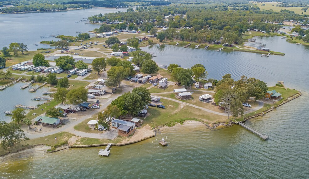 JTACR Real Estate Group is pleased to exclusively present Mustang RV Resort & Boat Storage: a 220-unit (150 pads, 60 enclosed boat storage stalls, and 10 hotel rooms) resort community on one of the western side peninsulas of Lake Fork.