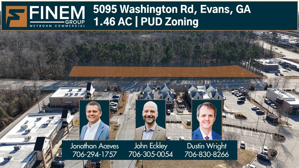 The Finem Group at Meybohm Commercial is pleased to exclusively present 5095 Washington Road in Evans, Georgia for sale. This ±1.46-acre commercial land parcel is zoned PUD and allows for a variety of commercial uses. Positioned adjacent to the signalized intersection of Washington Road and William Few Parkway, the property offers strong visibility and accessibility in one of Columbia County’s most established and growing corridors. The site may be sold as a single commercial tract or subdivided and sold seperately.