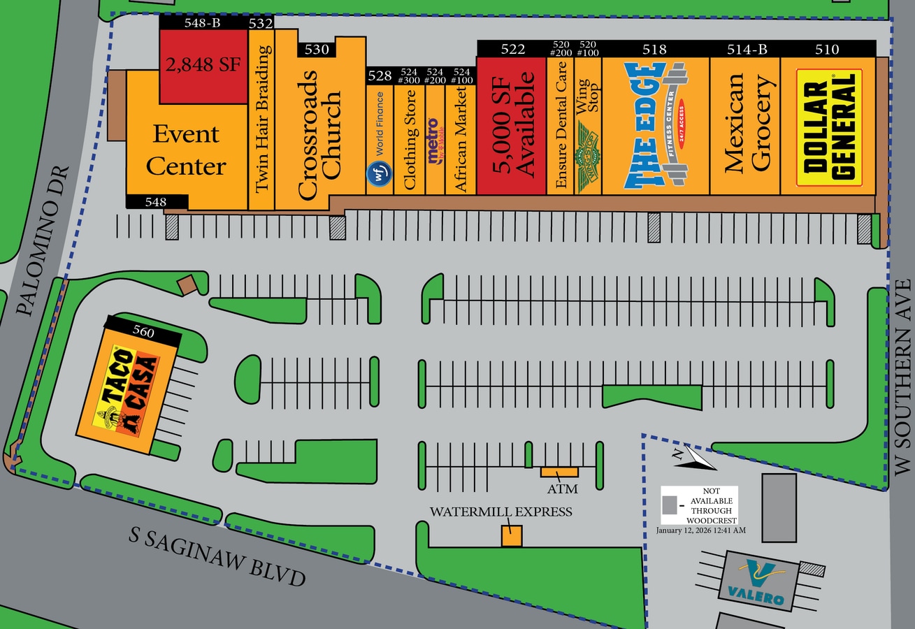Saginaw Commons est une propriété d'environ 59 000 SF située sur la rue Main à Saginaw, qui est la principale artère traversant la ville. La combinaison de locataires comprend des locataires de crédit nationaux et locaux desservant la communauté environnante. Les suites commerciales de ce centre sont disponibles à la location pour tout, des vitrines de magasins traditionnels et des restaurants aux bureaux en passant par les fournisseurs de services médicaux ou autres fournisseurs de services professionnels. Woodcrest Capital accueille les entreprises franchisées et les entreprises qui y sont implantées pour la première fois avec des contrats de location faciles à lire et des conditions souples. Woodcrest est également suffisamment sophistiqué pour plaire au plus grand des locataires de crédit nationaux. En tant qu'entreprise familiale avec plus de 40 ans d'expérience dans l'immobilier commercial, Woodcrest possède et exploite tout, des centres de classe A dans les quartiers les plus fréquentés aux centres en difficulté qu'elle réhabilite dans les communautés rurales en difficulté. Appelez-nous dès aujourd'hui pour trouver le bon emplacement pour votre entreprise, car nous avons généralement plusieurs occasions de vente au détail dans la région immédiate !