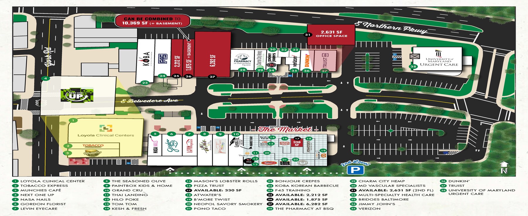 Belvedere Square Shopping Center 510-600 E Belvedere Ave 330–13 330 pi² d'espace disponible • Baltimore, MD 21212