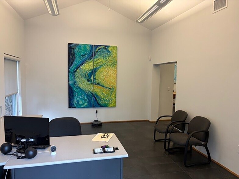 Open beam, vaulted ceilings creating a bright and spacious work environment