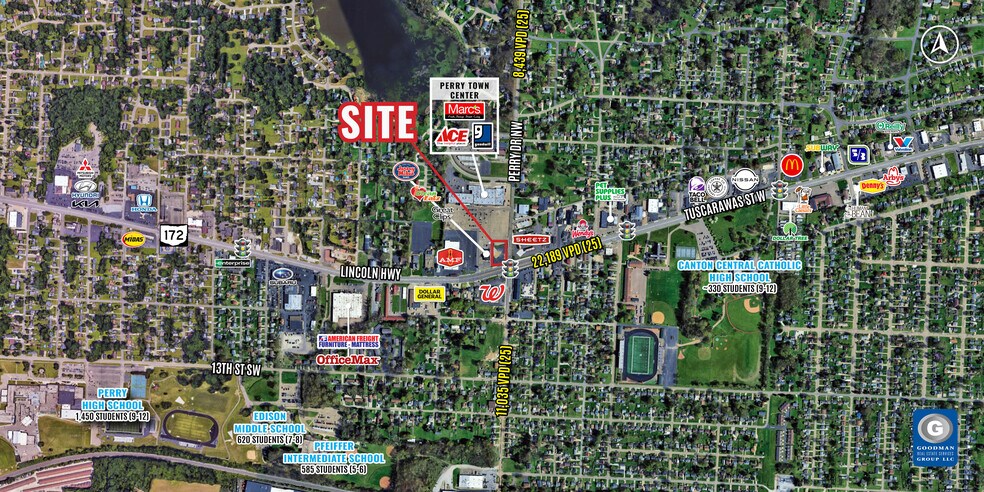 AVAILABLE: 1 AC for ground lease or build to suit Small shop and restaurant space with patios and drive-thru possible Anchored by Marc’s which generates daily needs traffic from the surrounding community More than 25,000 households in a 3-mile radius SR-172 is a primary east-west corridor that connects Canton to Massillon Over 22,000 vehicles pass in front of the site daily Excellent street-front visibility Convenient access to nearby schools