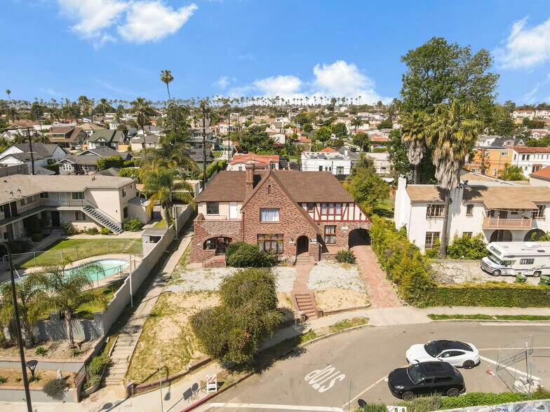 - Front structure is a Tudor style fourplex (renovated in 2024) consisting of (1) 4BD/4BA unit, (1) 3BD/2BA unit, and (2) studio units