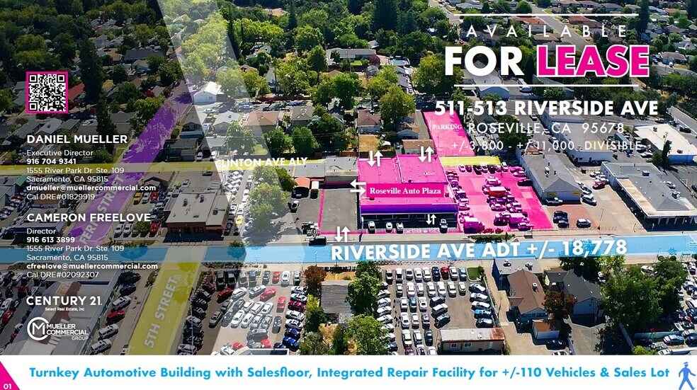 « Cet emplacement offre l'une des possibilités de vente et de réparation automobiles les plus attrayantes du réseau dynamique du centre-ville de Roseville. L'édifice est situé au cœur de Roseville au sud du boulevard Douglas et à quelques minutes au nord de l'autoroute I-80 qui donne accès aux autoroutes 160, 99 et 50. Composé de +/- 11 000 SF d'espace de bâtiment flexible avec des bureaux de vente d'automobiles disponibles, des espaces de salle d'exposition automobile et +/- SF 3 800 SF disponibles pour une installation de réparation automobile intégrée et un espace pour la teinture personnalisée des fenêtres. La vaste gamme de commodités offertes comprend des panneaux de façade et des panneaux commémoratifs, trois portes roulantes, de larges portes battantes avant, un système de CVC contrôlé par le locataire, un accès 24 heures sur 24, et l'emplacement est entouré de points d'accès privilégiés pour permettre l'accès à un nouveau réseau client immédiat. La propriété est située à proximité d'une zone résidentielle dense et à proximité d'une multitude d'utilisateurs au détail tels que Hertz Car Rentals, Maaco Auto Body & Painting, Chevron, Starbucks, Jack in the Box, Panda Express, 7-11 Dépanneurs et Kaiser Permanente. Grâce à sa proximité à moins d'un mille de l'Interstate 80, au détail, à la vente et aux services de vente d'automobiles, à des logements résidentiels denses et à une entrée et à une sortie pratiques de la propriété de l'avenue Riverside, ce bâtiment bien entretenu en fait un endroit idéal pour la location.