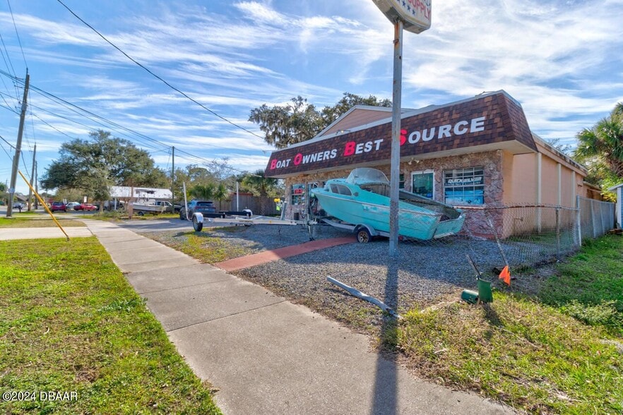 Le bâtiment de 5 000 pieds carrés est situé sur un terrain commercial clôturé de 90 pi x 200 pi sur l'autoroute américaine #1 très fréquentée à Port Orange. Il existe une servitude sur le côté sud du lot qui offre un accès supplémentaire. Le bâtiment est en blocs de béton avec un nouveau toit (2019). L'entreprise occupe 3 300 pi2 de l'immeuble.
