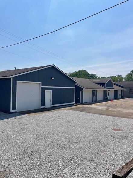 3- 8x8 overhead doors 1- 8x10 overhead door Private office and bathroom cabinetry and refrigerator space gravel parking area separate gas and electric meters.