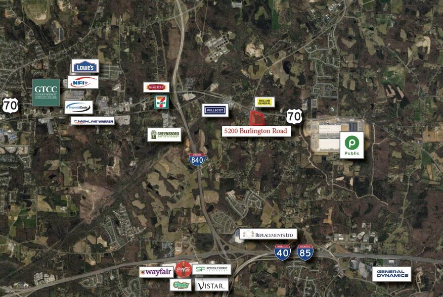 Emplacement : Situé dans un corridor à forte croissance avec un accès proche à l'autoroute 840 (boucle urbaine de Greensboro) et à proximité de l'I-40 et de l'I-85, à une intersection entièrement signalée.