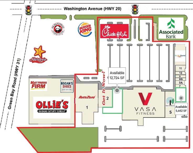 Racine Centre est un centre communautaire de 135 827 SF ancré par Piggly Wiggly. Emplacement impeccable situé à l'intersection la plus achalandée du comté de Racine avec plus de 60 000 véhicules par jour combinés entre les autoroutes 20 et 31. Situé dans une zone commerciale privilégiée partagée avec des détaillants nationaux tels que Kohl's, Wal-Mart, Big Lots et Walgreens.