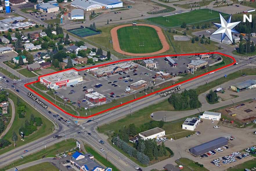 Situé de manière proéminente à l'intersection des autoroutes 11 et 11A, à proximité de Extra Foods, Canadian Tire, Sobeys et d'une école secondaire. Ancré par un Shoppers Drug Mart de 17 000 pieds carrés. Base de locataires diversifiée incluant Tim Horton's, Warehouse One, Harvey's, The Source, Subway et le restaurant fusion Cucina. Exposition quotidienne à plus de 35 000 véhicules.