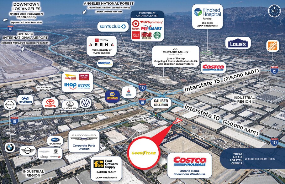 » Minutes from Ontario International Airport (ONT), which served 7 million passengers in 2024, handles over 750,000 tons of freight annually and has been recognized as the fastest growing airport in the U.S. for the past five years.