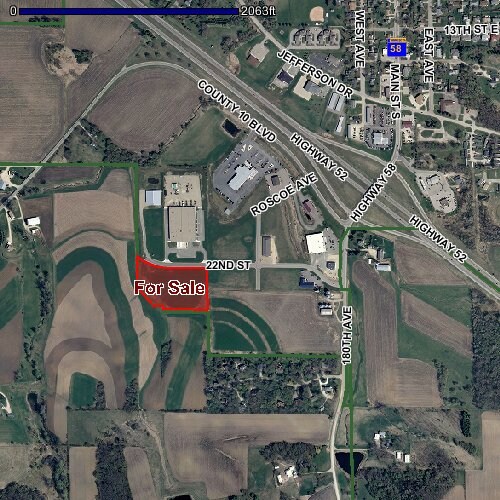 Parcelle d'environ 5 acres, dont 3,5 sont aménagables. Prêt à pelle avec tous les services publics. Parc industriel et commercial en pleine croissance. Idéalement situé à l'intersection des autoroutes 52 et 58, à 20 milles au nord de Rochester et à 40 minutes au sud de la région métropolitaine de Twin Cities.