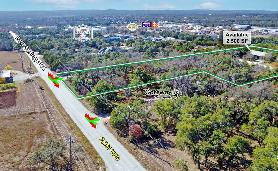 This property offers a unique leasing opportunity in Dripping Springs, Texas, featuring a 2,500 SF warehouse space that previously operated as the Dripping Springs Vodka Distillery. Positioned directly on Bell Springs Road, the site provides convenient access to Highway 290, ensuring strong connectivity to the greater Austin area and surrounding Hill Country communities. The building’s layout and location make it suitable for a variety of uses, including light industrial, storage, or specialty operations. The property benefits from a scenic setting with mature trees and natural surroundings, creating a distinctive environment for businesses seeking a non-traditional space. Nearby traffic generators include H-E-B, Tractor Supply, and multiple retail and service businesses, supporting strong local activity. With a reported traffic count of 44,302 VPD on Highway 290 and 2,261 VPD on Bell Springs Road, the site offers visibility and accessibility for operational needs.