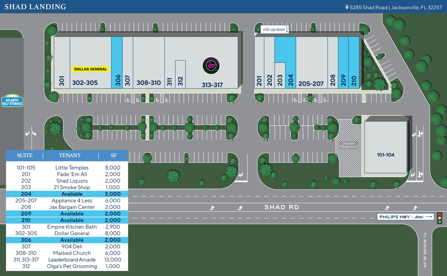 Shad Landing 5285 Shad Rd 2 000–9 000 pi² d'espace disponible • Commerce de détail • Jacksonville, FL 32257