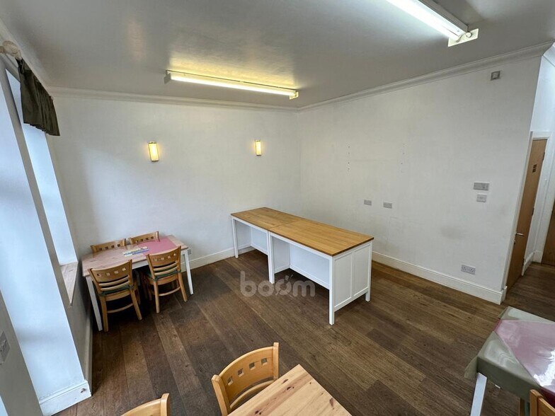 The main area has a fantastic level of floor space, with enough room for a few tables for customers, and a large counter space for staff. There is masses of natural light pouring in through the windows at the shop front, creating a bright and welcoming space for clients, customers or staff.