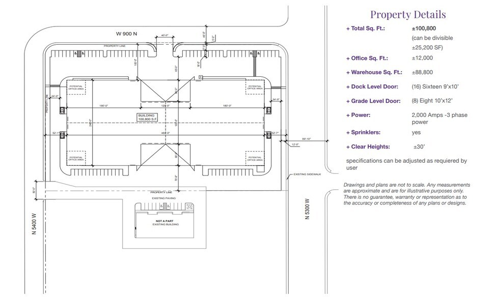 MDL Group est heureux d'offrir à Port 15 Industrial Center l'occasion de participer à la croissance industrielle rapide de Cedar City, en Utah. Situé dans le très convoité parc d'affaires Port 15, ce projet offre une option de construction sur mesure pour toute entreprise, investisseur ou fabricant qui cherche à être situé dans le comté d'Iron. Ce projet de construction sur mesure comporte un plan provisoire pour un entrepôt de 100 800 pi2 pouvant être adapté aux besoins particuliers des utilisateurs. Besoin d'une certaine quantité de bureaux, de puissance supplémentaire, de plus de quais ou d'espace de cour ; le ciel est la limite et cette propriété. Le développeur est prêt à travailler avec n'importe quel utilisateur pour construire un projet comme bon lui semble. Les spécifications actuelles comprennent des plafonds clairs de 30 pi, une construction basculante, seize (16) emplacements de quai, huit (8) portes de niveau, 2 000 ampères de puissance triphasée 120/208 et quatre (4) zones de bureaux potentielles.