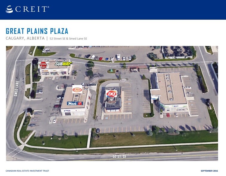 Capuchon est d'un immeuble à locataires multiples. Locataires voisins : Tim Horton' s, Mac' s, Kal-Tire, Métro, Money Mart, Servus Credit Union, Reine laitière, Desert Pita Exposition à 31 000 à 40 000 véhicules par jour le long de la 52 rue SE. À côté du centre de soccer du métro (plus de 1,5 million de personnes visitent l'installation chaque année. Le Centre de soccer compte en moyenne 4 000 admissions chaque jour de semaine, dont 15 000 les fins de semaine et plus de 20 000 les fins de semaine du tournoi).