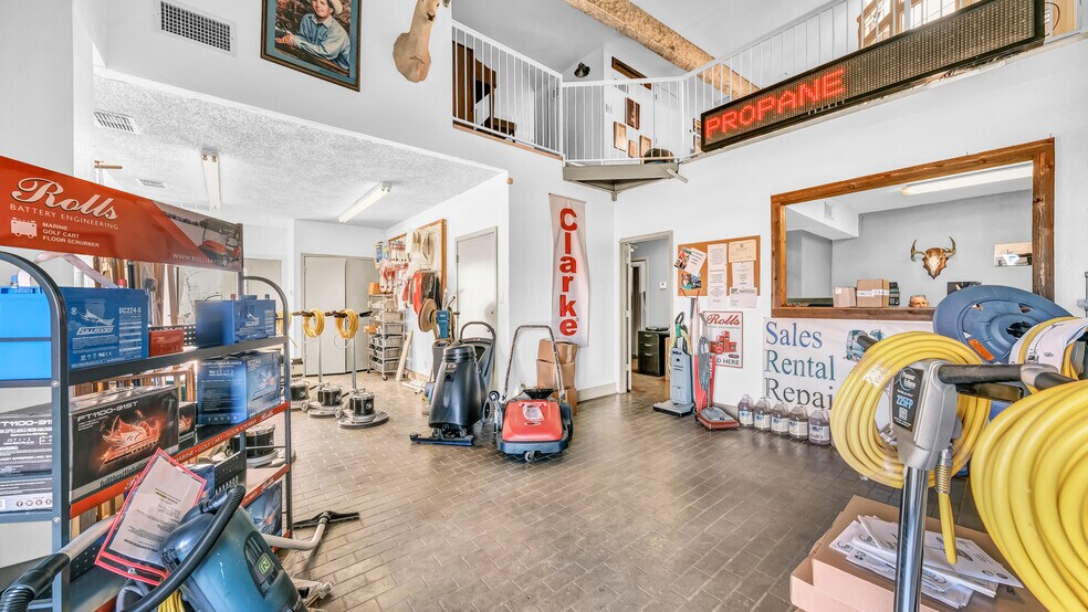 Formerly utilized as a commercial janitorial equipment facility, the building includes both office and retail space ideal for customer-facing operations, along with a spacious garage area featuring a bay door for storage, service, or distribution.