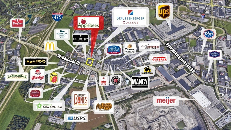 Applebee's 531 W Dussel Dr 5 332 pi² Commerce de détail Immeuble Maumee, OH 43537 3 421 294 $ CAD (641,65 $ CAD/pi²) 7,25% Taux de capitalisation
