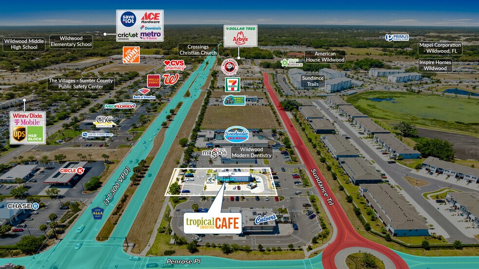 - High-traffic corridor with excellent visibility from Sumter County Rd 466A (17,300 AADT).