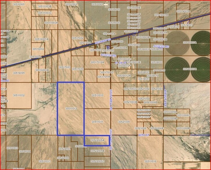 La propriété en question est située juste au sud de la route Salome et légèrement à l'est de McVay Rd, alias Stutz Well Rd. qui donne accès à l'autoroute 60.