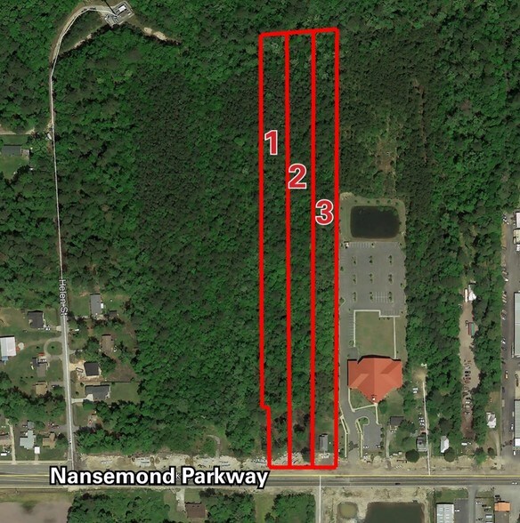 Cette parcelle de terrain de 7,86 acres contient trois parcelles susceptibles d'être divisées. La propriété est zonée O-I et se trouve dans le district bureau-institutionnel. Face à la promenade Nansemond, le dénombrement du trafic est de 15 667 VPD.