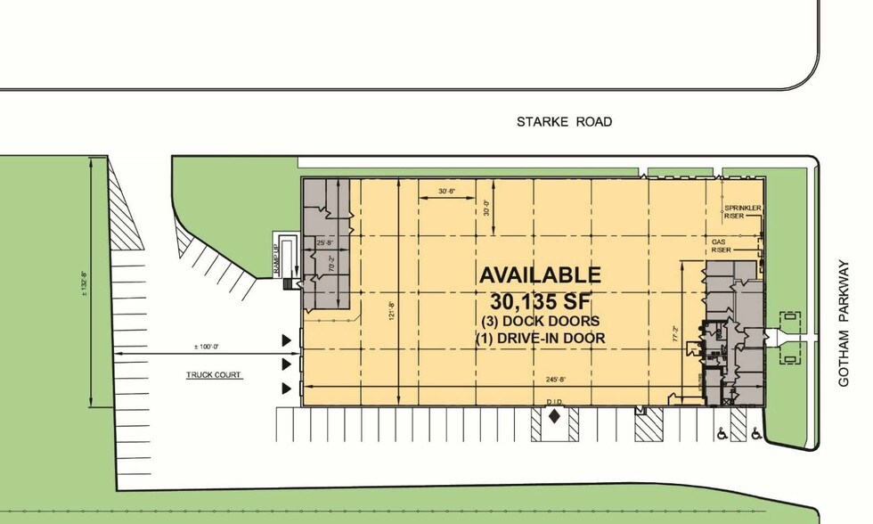 Le 540 Gotham Parkway est un bâtiment industriel de 30 135 pieds carrés avec une superficie de bureaux de 1 875 pi2. La hauteur du plafond dans le bâtiment est de 17 pi et l'espacement des colonnes est de 30 pi x 30 pi. Le bâtiment dispose de 3 quais de chargement et d'une porte d'entrée et est desservi par 400 ampères de puissance. Le stationnement est prévu pour 43 voitures. Le prix de l'immeuble est négociable.