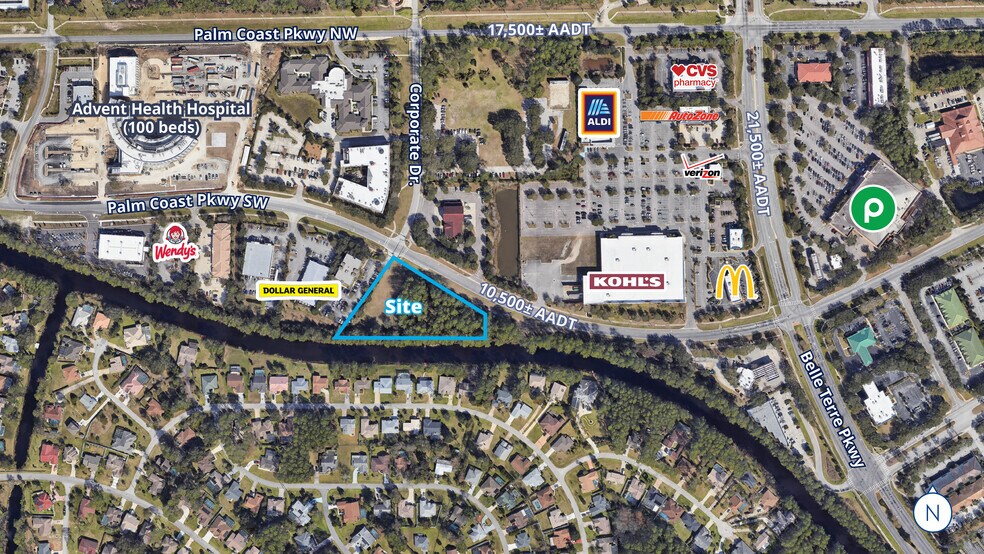 - L'une des rares parcelles de terrain non aménagées de Palm Coast Pkwy dans le principal corridor de vente au détail