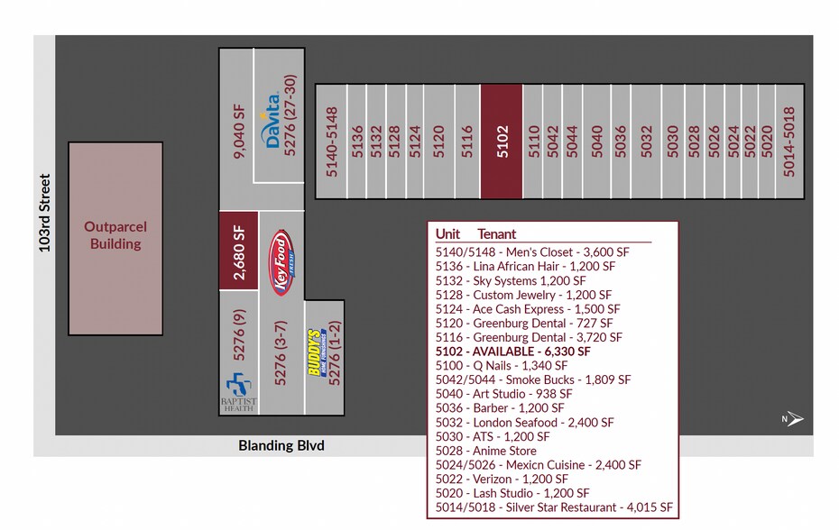 Blanding Town Center 5432 Blanding Blvd 6 330 pi² d'espace disponible • Commerce de détail • Jacksonville, FL 32210