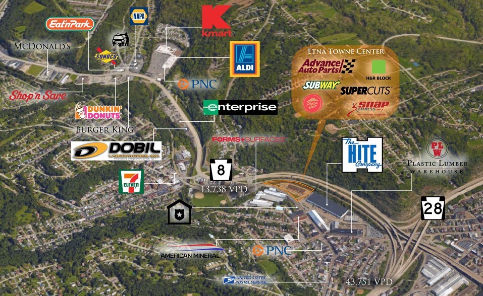 Etna Towne Centre 550-560 Butler St 3 344 pi² d'espace disponible • Commerce de détail • Etna, PA 15223