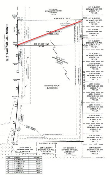 Première parcelle commerciale utilisable sur la route 377 au nord de la boucle 820. L'US Highway 377 s'étend du nord au sud et est une route à sept voies sur laquelle la propriété fait face à la propriété. La US Highway 377 est parallèle à la I-35 Ouest et est l'ancienne route menant à Denton, au Texas. La boucle 820 se trouve à 2,5 milles au sud de la propriété et encercle Fort. Worth avec l'Interstate 35W qui croise la boucle 820 à environ 3 milles à l'ouest de la route 377 des États-Unis. À environ 3,5 milles à l'est de la route 377 des États-Unis, la boucle 820 devient S.H. 183/S.H.121 qui relie cette zone à l'aéroport de DFW et à Dallas.
