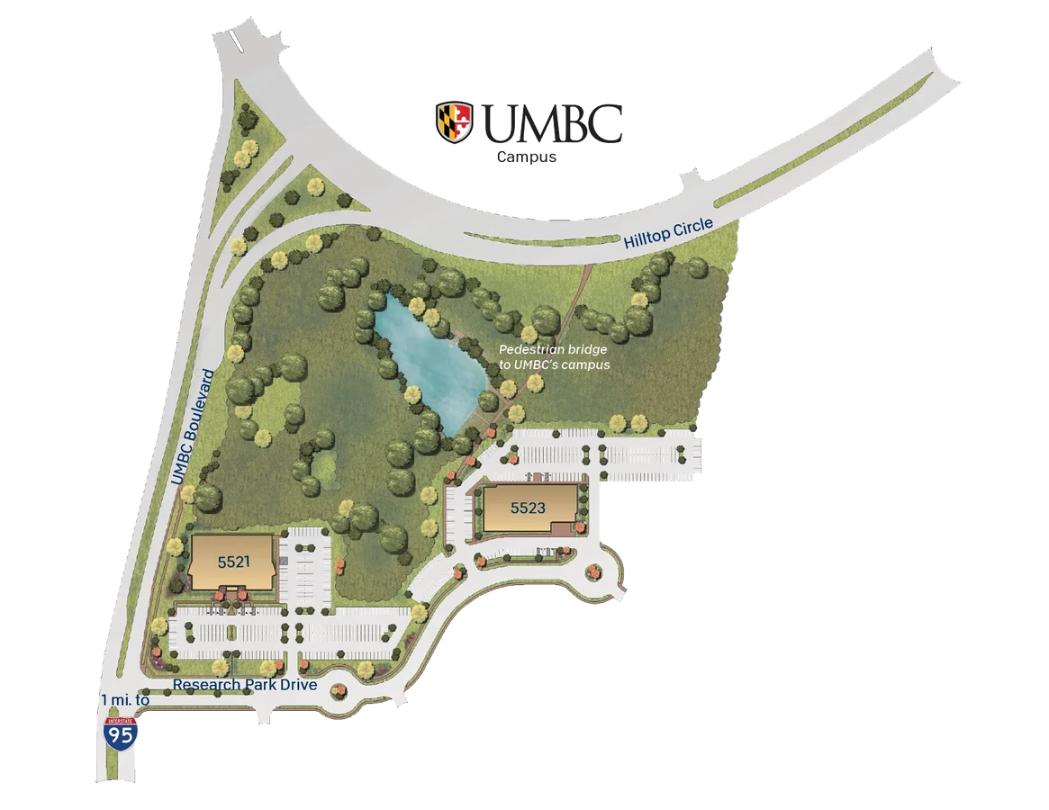 Salon communautaire central et micromarché sur place - Voir ici https://my.matterport.com/show/?m=usSH57yYCiW Plans d'étage souples pour répondre aux besoins du bureau et de la recherche Situé dans le parc de recherche et de technologie bwtech @UMBC, adjacent au campus de l'UMBC À l'intérieur d'une zone HubZone fédérale Minutes de la station Amtrak/Marc Accès direct sans feux de circulation à l'aéroport I-95, 695 et BWI Proximité des laboratoires fédéraux, de la NSA et de Ft. Meade Beaucoup de stationnement gratuit, 4/1 000 pc Baltimore County, O.T. zonage : bureau, technologie