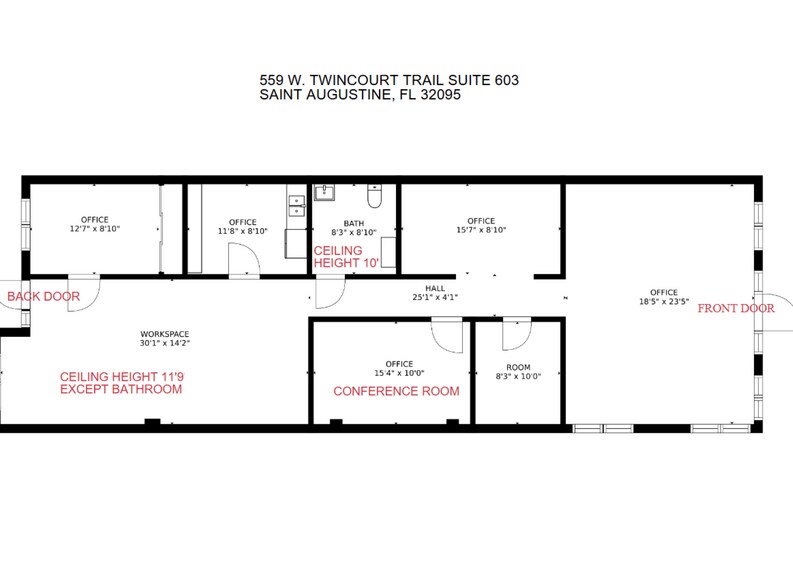| Superficie totale disponible | 1 887 pi² | Façade | 449’ le Twincourt Trl |