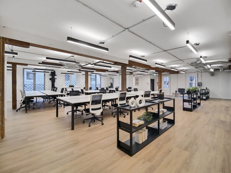 This former warehouse building currently offers 2,450 sq ft of fully fitted workspace on the first floor. A balanced mix of fixed-desk workstations and flexible working positions with further options to increase density subject to your requirements at a later date. The first floor offers a bright working environment with generous collaboration areas and reception lounge.