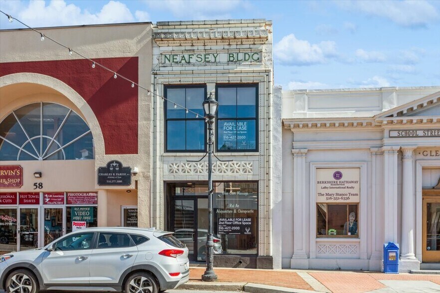 Positioned in the heart of Glen Cove’s vibrant commercial corridor, 56 School Street offers a rare opportunity for both investors and end users. This 2,070 square foot, two-story office/retail building features a highly versatile layout enhanced by industrial loft-style finishes, including exposed brick, oversized windows, and strong structural elements that reflect its pre-war character. Fully gut renovated in 2016, the property is thoughtfully configured with three private offices on the ground floor and a spacious open suite on the second floor, making it ideal for a variety of professional, retail, or creative uses. The building is equipped with two zones of central HVAC, an ADA-compliant restroom, and four designated parking spaces located at the rear. Strategically located near the Glen Cove LIRR Station and directly across from major national retailers, this property benefits from strong visibility, consistent foot traffic, and convenient accessibility. A standout asset in Glen Cove’s ongoing revitalization, this is a prime opportunity to own a signature building in a growing market. Situated directly across the street from Starbucks, Staples, AMC, F45 and other well known reatilers!