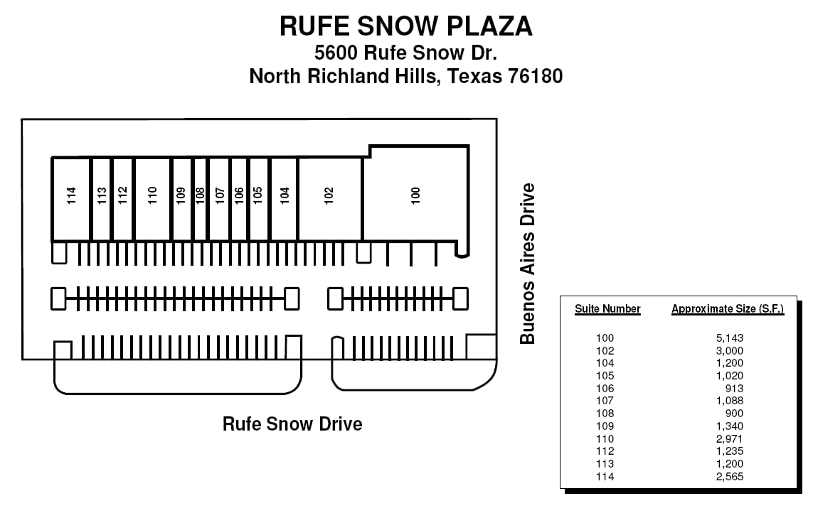 Rufe Snow Plaza 5600 Rufe Snow Dr 1 086–5 399 pi² d'espace disponible • Commerce de détail • Fort Worth, TX 76180