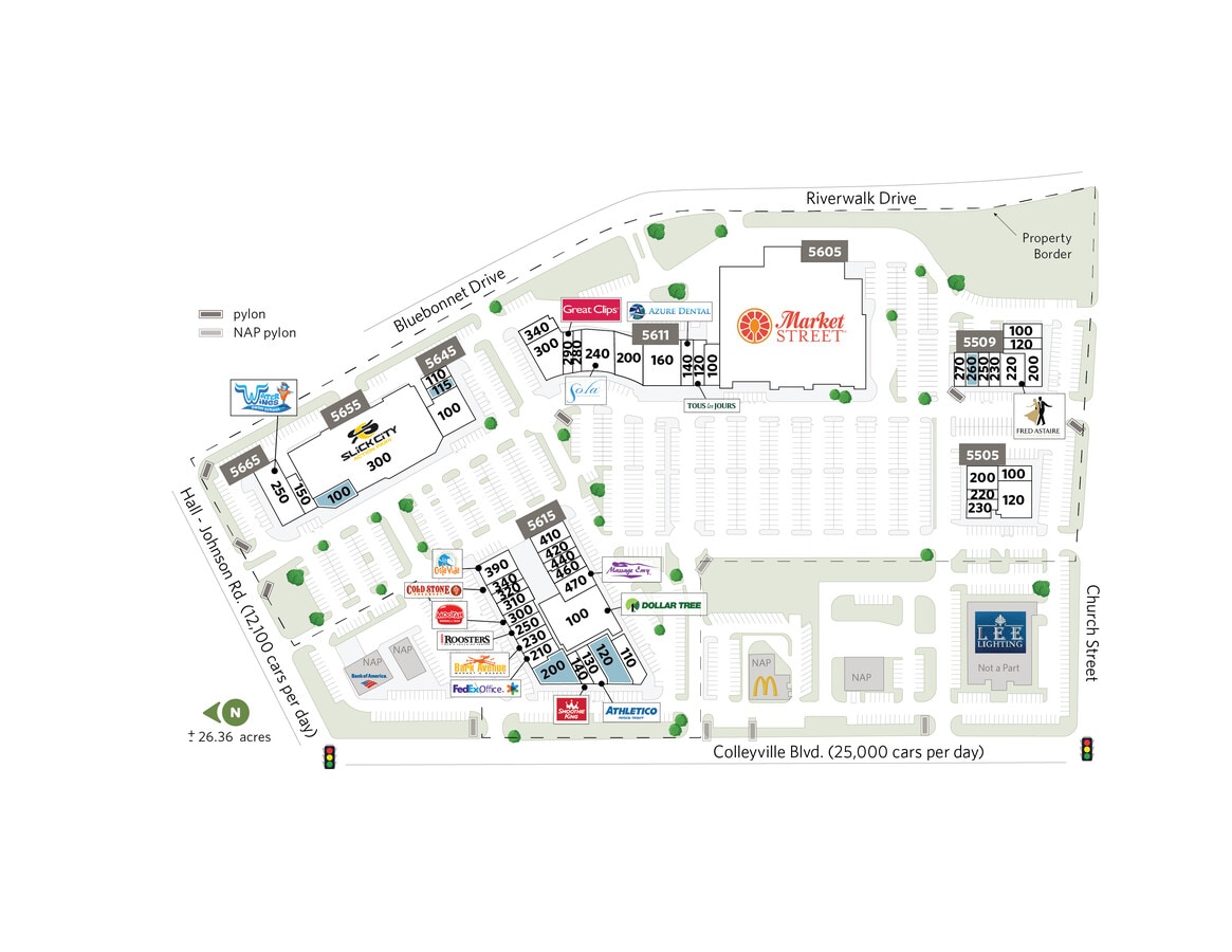 Ancré par la rue Market, le centre de vie très en vue de Colleyville occupe une position privilégiée située à l'autoroute 26 et au chemin Hall Johnson. Le centre offre un excellent mélange de détaillants nationaux et régionaux solides. Le centre-ville de Colleyville est la principale destination de magasinage pour les quartiers avoisinants. Puisqu'il est situé parmi de nombreux secteurs résidentiels, ce centre commercial offre une expérience de magasinage de choix dans un endroit stratégique avec une visibilité élevée et un grand nombre de trafic.