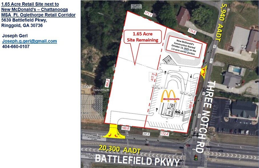 The subject property is a 1.65 acre commercially zoned site next to a new McDonald's (under construction) that has cross access to the lighted intersection of Battlefield Pkwy and Three Notch Rd. Email joseph.g.gerl@gmail.com for additional info.